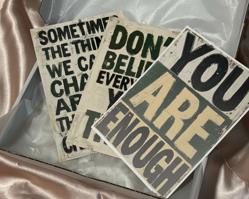Ob als liebevolle Botschaft an Lieblingsmenschen, als Begleiter am Kühlschrank oder als Impuls am Arbeitsplatz: Jede Karte trägt die Absicht, positive Gedanken und Selbstreflexion in den Alltag zu bringen.