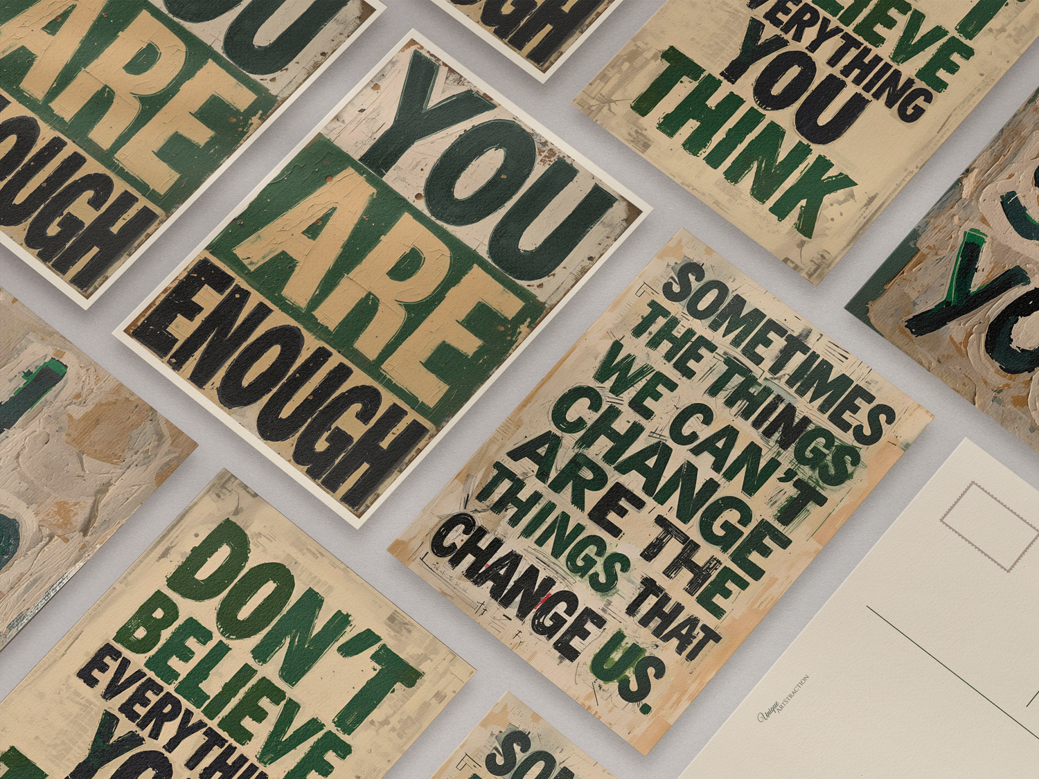 Unsere Kunstkarten in A6 verbinden inspirierende Zitate mit abstrakter Kunst – ein Zusammenspiel aus Ästhetik und Tiefe.
