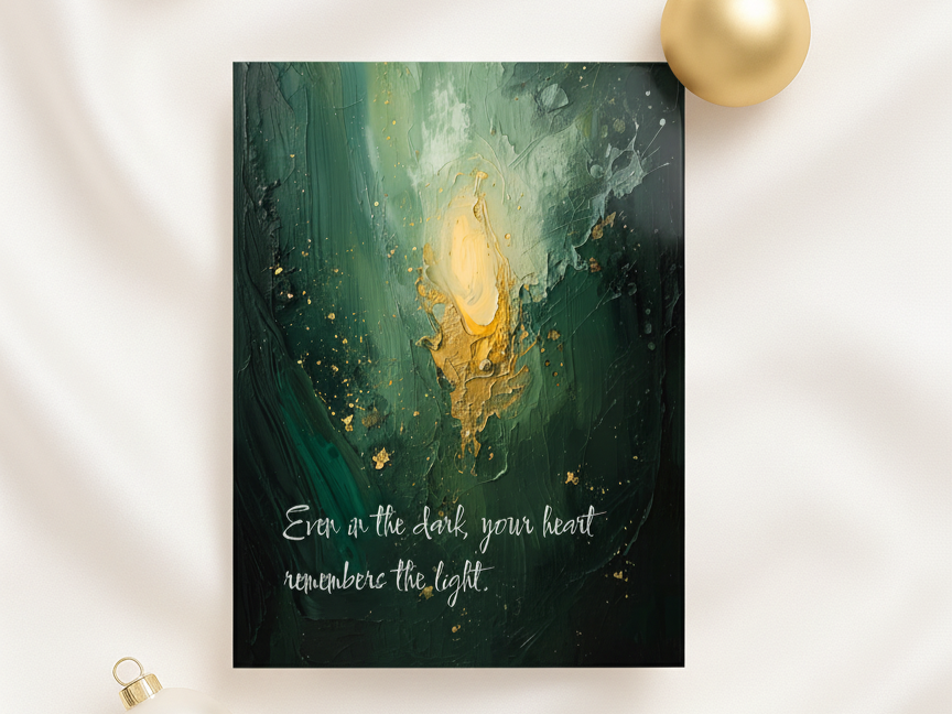 Schenke Bedeutung statt Beliebigkeit – die künstlerischen Weihnachtskarten auf Premium-Hochglanzpapier vereinen abstrakte Kunst und inspirierende Worte.