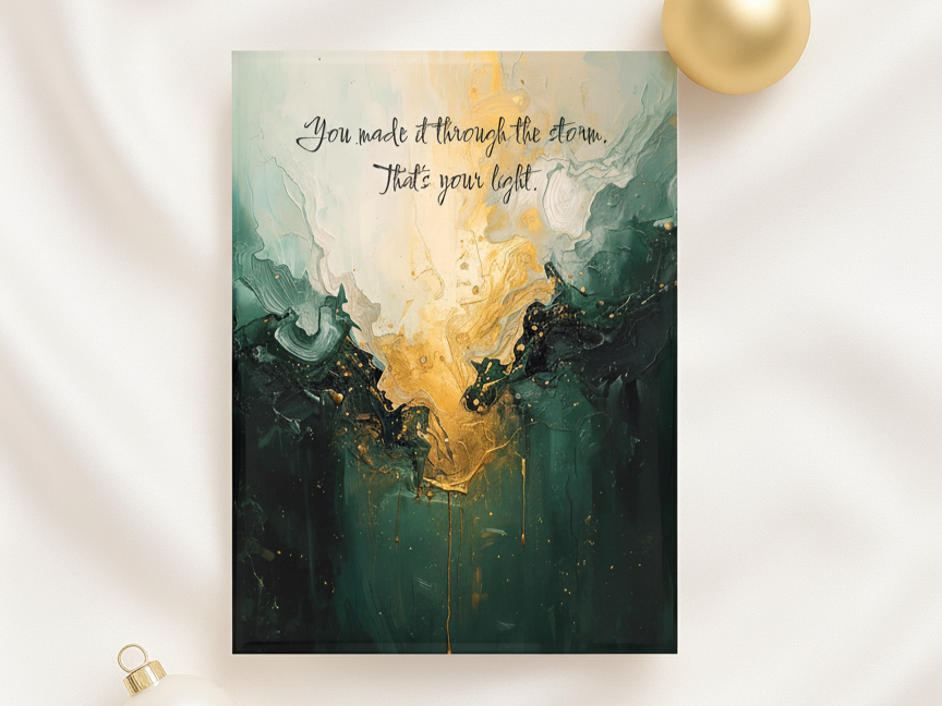 Schenke Bedeutung statt Beliebigkeit – die künstlerischen Weihnachtskarte vereinet abstrakte Kunst und inspirierende Worte.