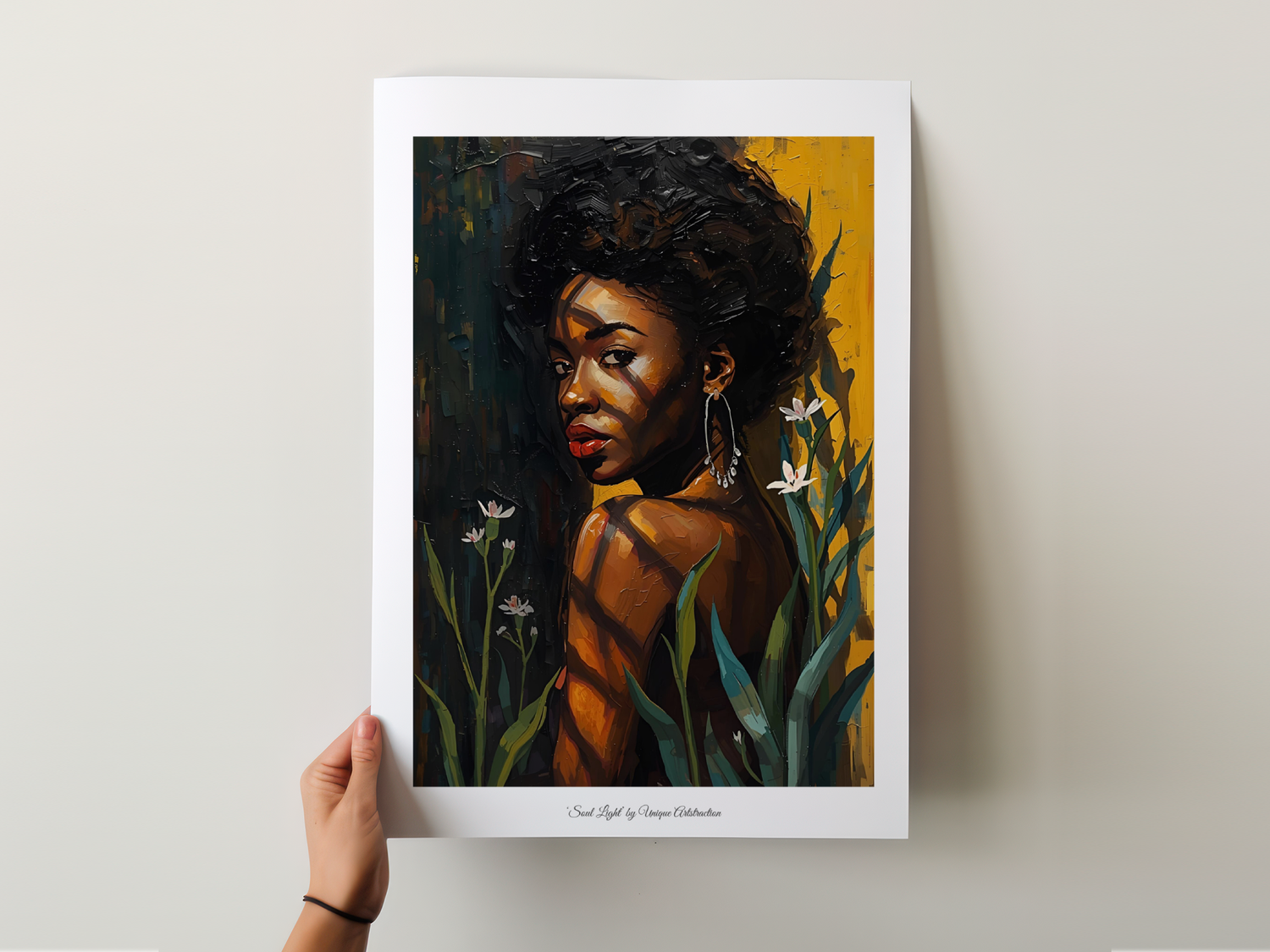 „Soul Light“ porträtiert eine Frau im Schatten, deren Blick hoffnungsvoll dem Licht entgegengeht. Das Bild erzählt von innerer Schönheit, die nicht durch äußere Umstände erlischt, sondern immer wieder neu aufblüht.