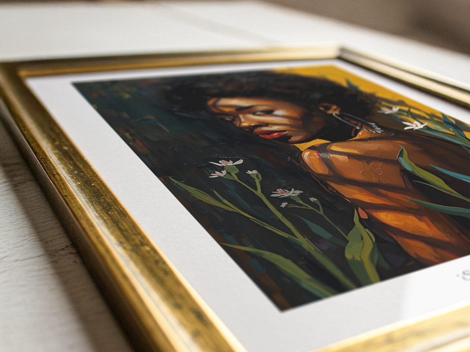 Entstanden im Geist des Internationalen Tags gegen Gewalt an Frauen , ist dieses Werk eine Hommage an Respekt, Wertschätzung und die Kraft der Heilung. Die Pflanzen im Bild sind Symbole für Lebenskraft und das tiefe Bedürfnis nach Frieden und Anerkennung.