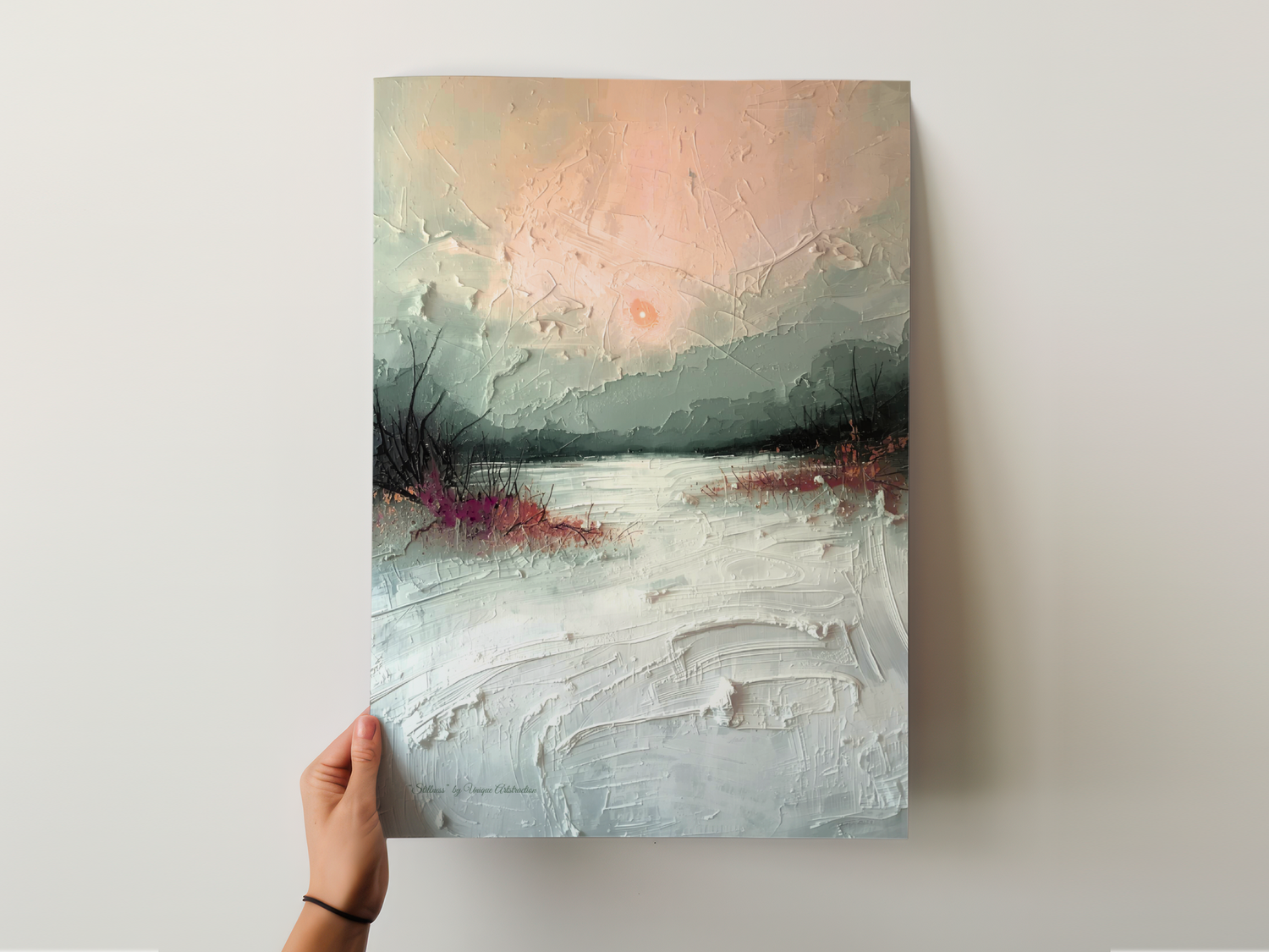 'Stillness' Abstraktes Poster über eine harmonische Winterlandschaft