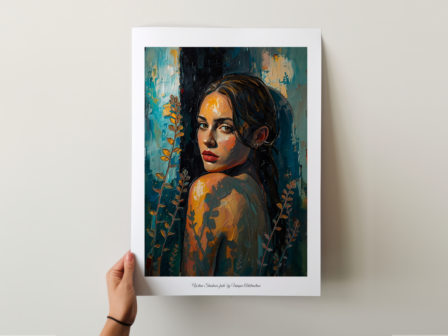 "When Shadows fade" ist ein starkes Frauenporträt, das Weiblichkeit, Respekt und innere Schönheit ins Zentrum rückt. Die Frau steht im Schatten und blickt entschlossen ins Licht – ein Symbol für Sichtbarkeit, Wertschätzung und den Mut, die eigene Stärke zu leben.