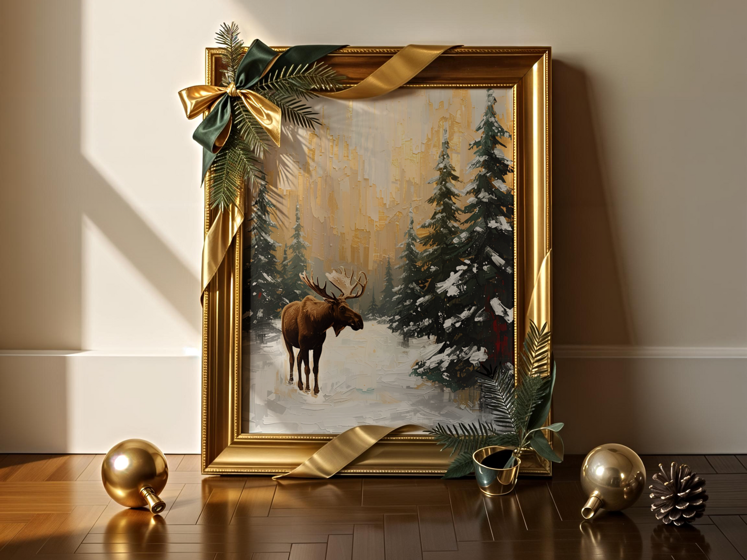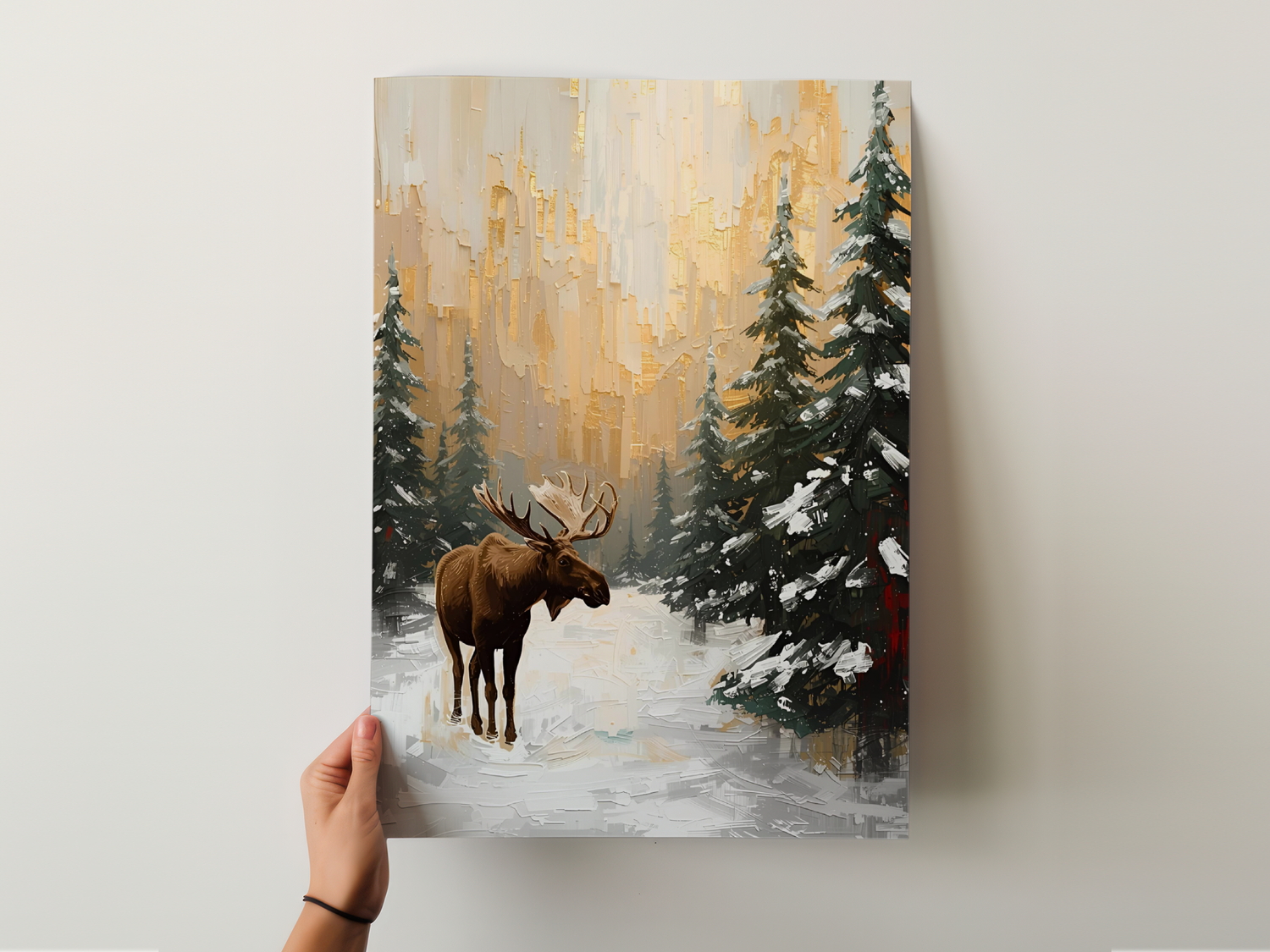 'Whispering Winter' Edles Rentier Poster für Weihnachten