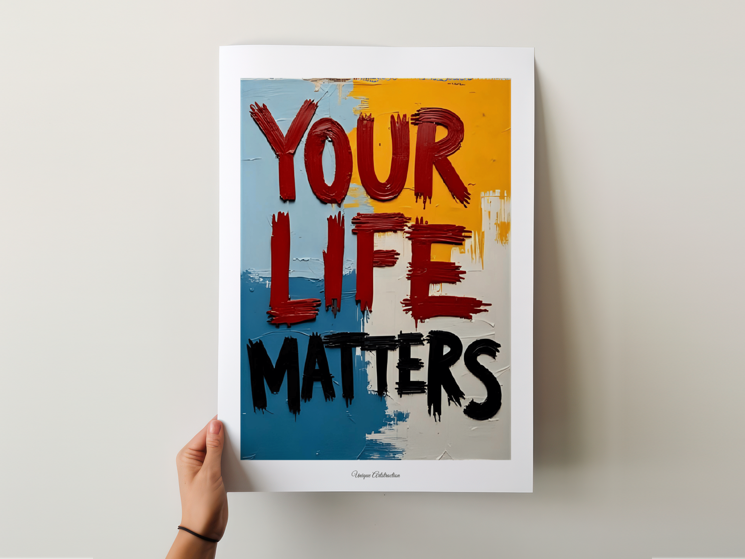 „Your life matters“ transportiert eine eindringliche Botschaft: Dein Leben hat Gewicht, Bedeutung und Wert. Die lebendigen Farben symbolisieren Kraft, Verbundenheit und Hoffnung.